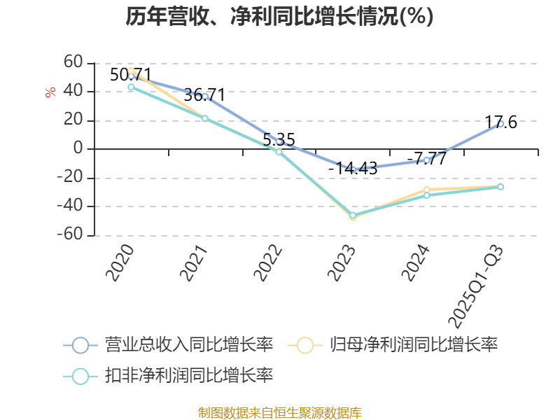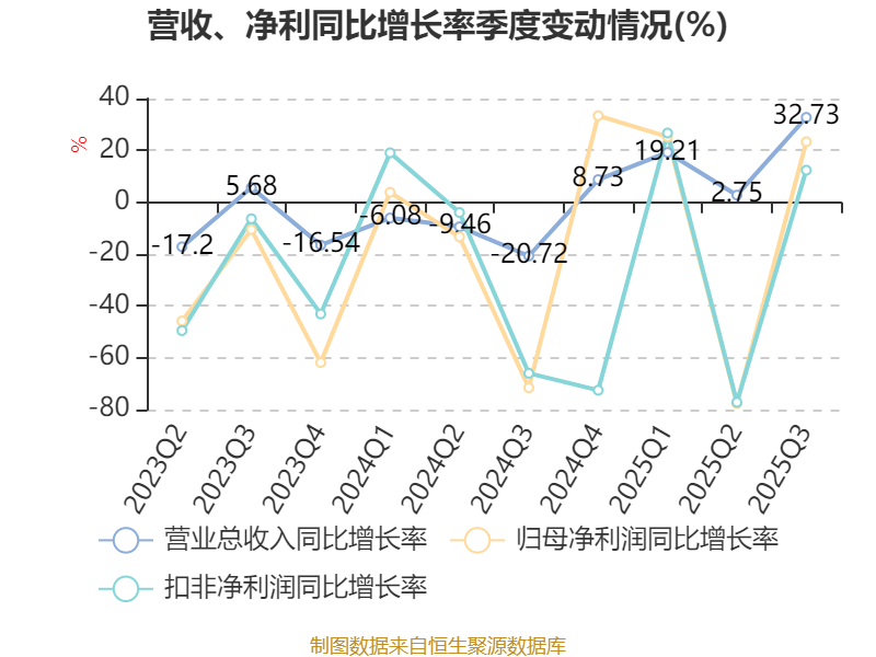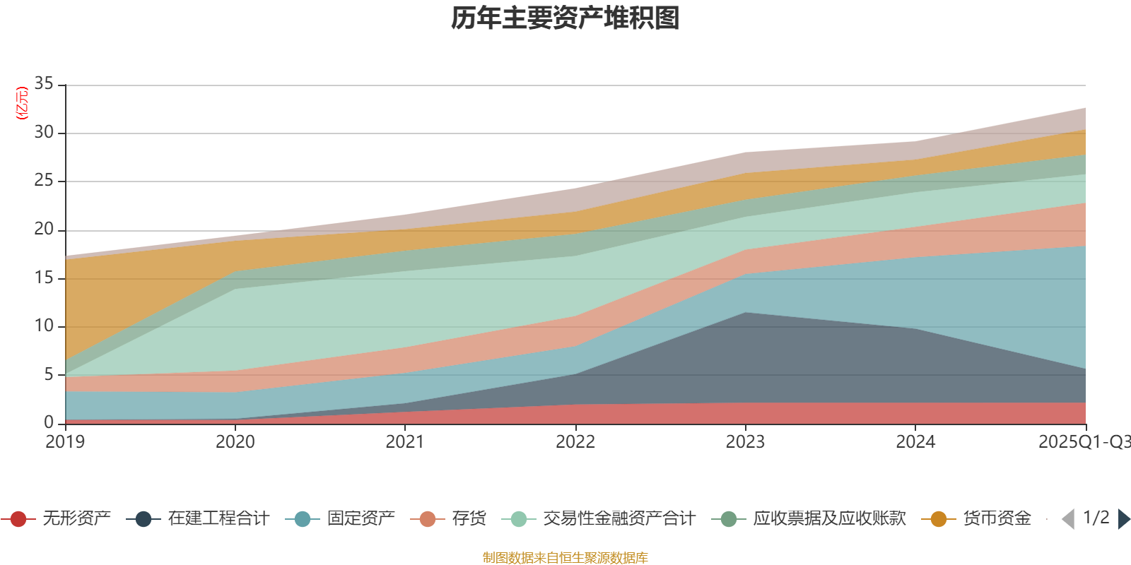 资产重大变化方面,截至2025年三季度末,公司在建工程合计较上年末减少54.34%,占公司总资产比重下降15.51个百分点;固定资产较上年末增加71.91%,占公司总资产比重上升13.58个百分点;交易性金融资产合计较上年末减少17.23%,占公司总资产比重下降3.19个百分点;存货较上年末增加41.27%,占公司总资产比重上升2.83个百分点。