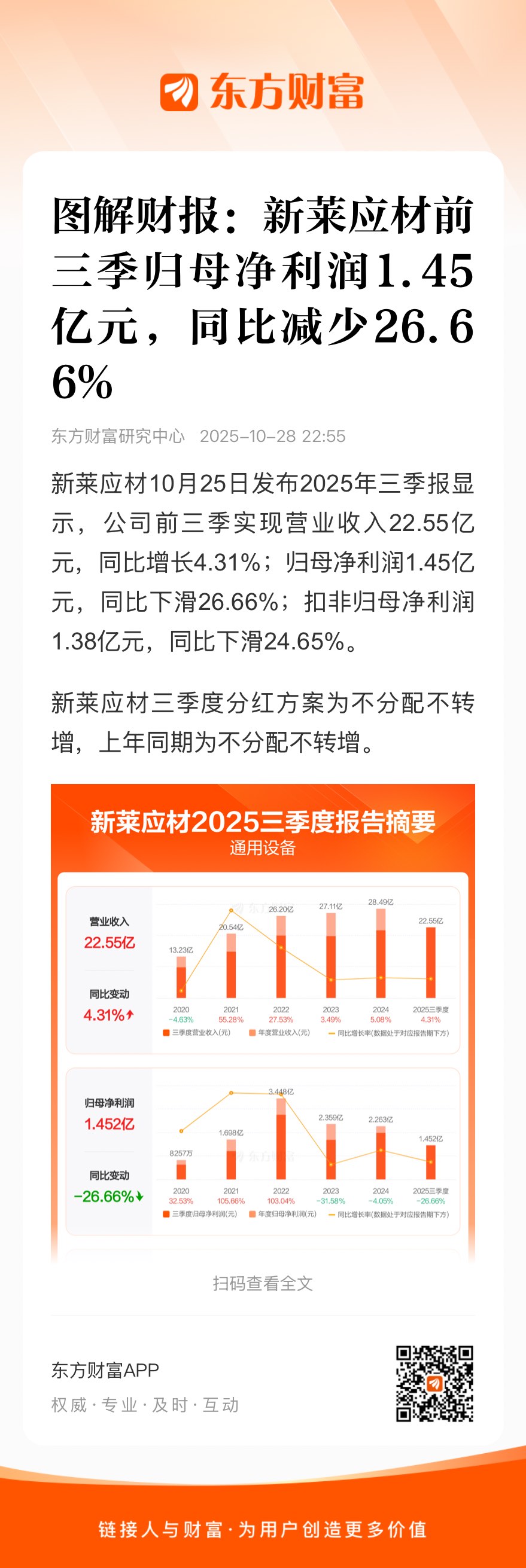 新莱应材三季度分红方案为不分配不转增,上年同期为不分配不转增。