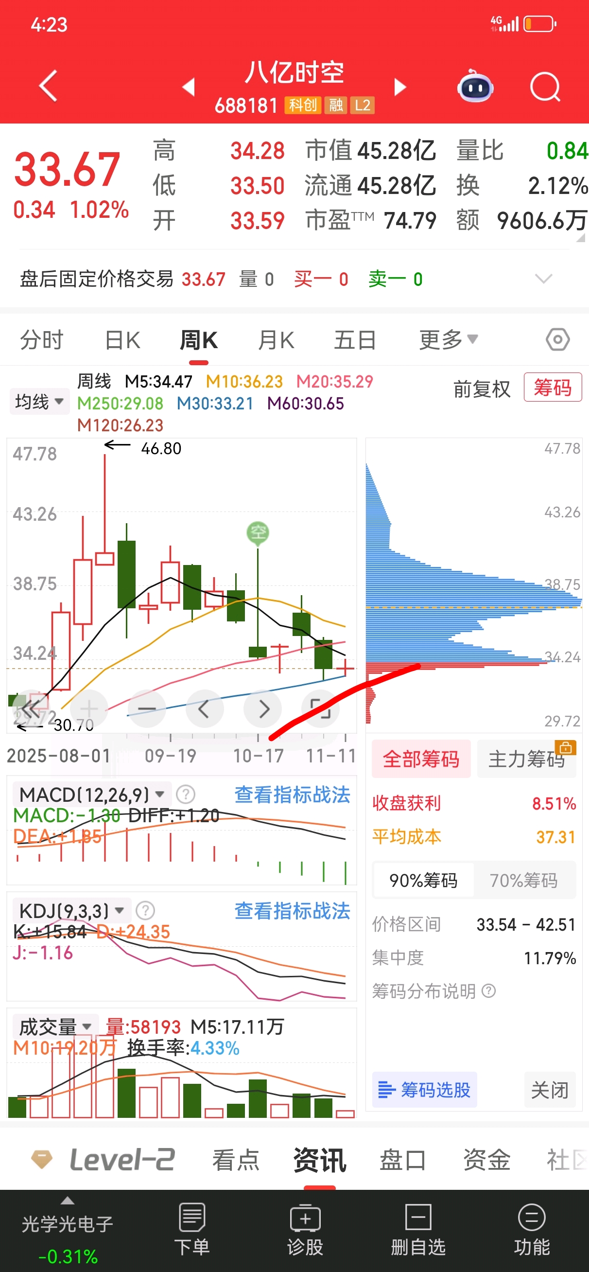 $八亿时空(SH688181)$ 30周线,一定得撑住,不然就去32找10月线了,既然选择了,大家就做多,别做多看空,多杀多