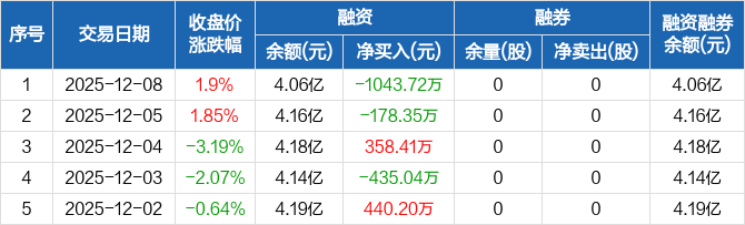 八亿时空:融资净偿还1043.72万元,融资余额4.06亿元(12-08)
