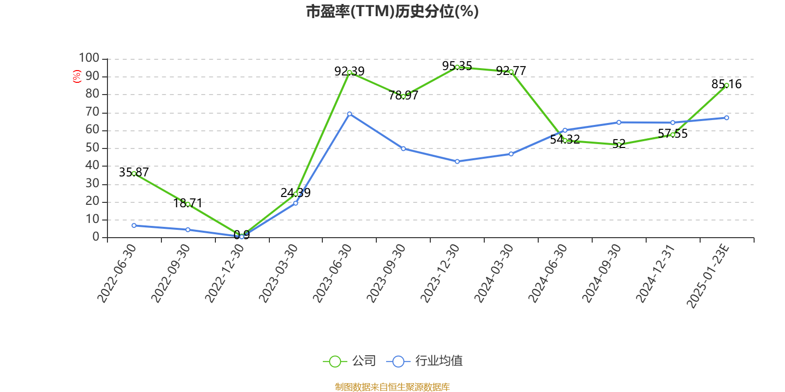 以本次披露业绩预告均值计算,公司近年市盈率(TTM)图如下所示: