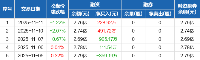 灿勤科技:融资净买入228.92万元,融资余额2.76亿元(11-11)