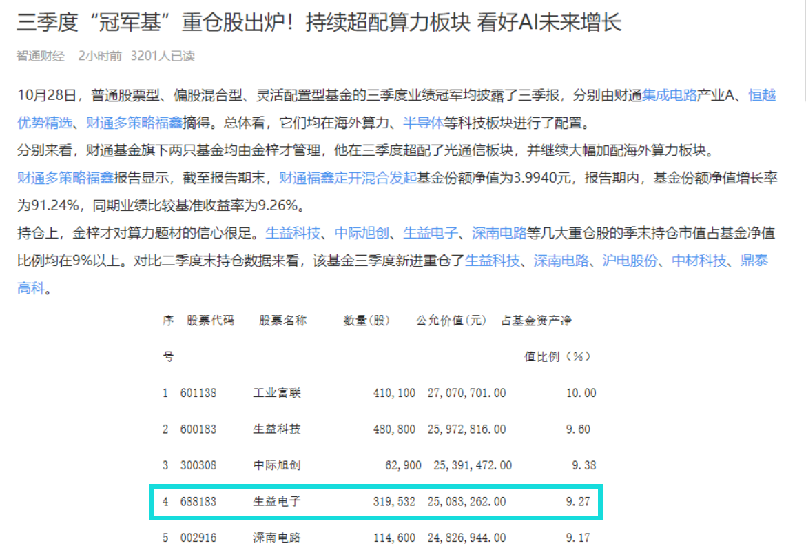 生益电子10月28日公告称,第三季度营收为30.60亿元,同比增长153.71%;归属于上市公司股东的净利润为5.84亿元,同比增长545.95%。前三季度营收为68.29亿元,同比增长114.79%;归属于上市公司股东的净利润为11.15亿元,同比增长497.61%。