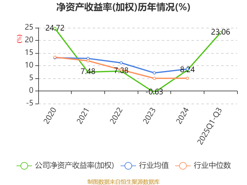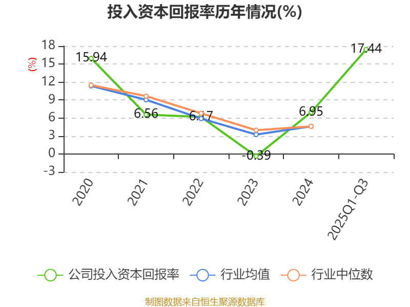 盈利能力方面, 2025年前三季度公司加权平均净资产收益率为23.06%,同比上升18.56个百分点。公司2025年前三季度投入资本回报率为17.44%,较上年同期上升13.26个百分点。