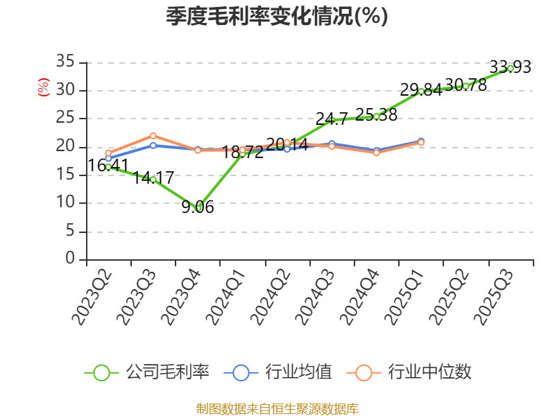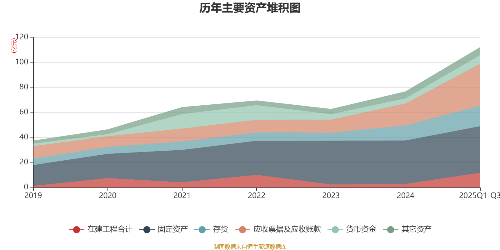 资产重大变化方面,截至2025年三季度末,公司固定资产较上年末增加7.07%,占公司总资产比重下降12.05个百分点;应收票据及应收账款较上年末增加92.45%,占公司总资产比重上升7.24个百分点;在建工程合计较上年末增加309.49%,占公司总资产比重上升6.76个百分点;存货较上年末增加35.86%,占公司总资产比重下降1.09个百分点。