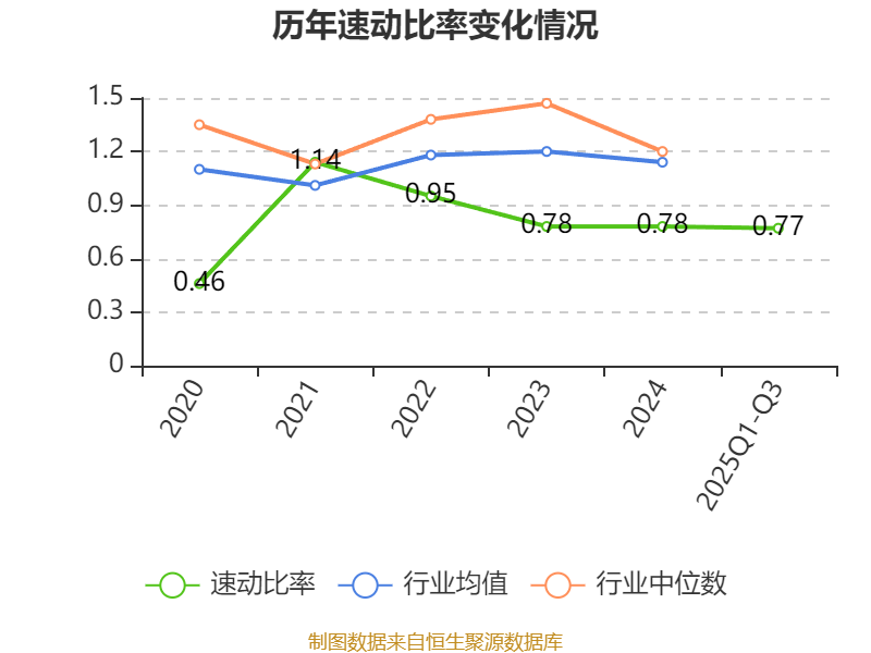 2025年前三季度,公司流动比率为1.06,速动比率为0.77。