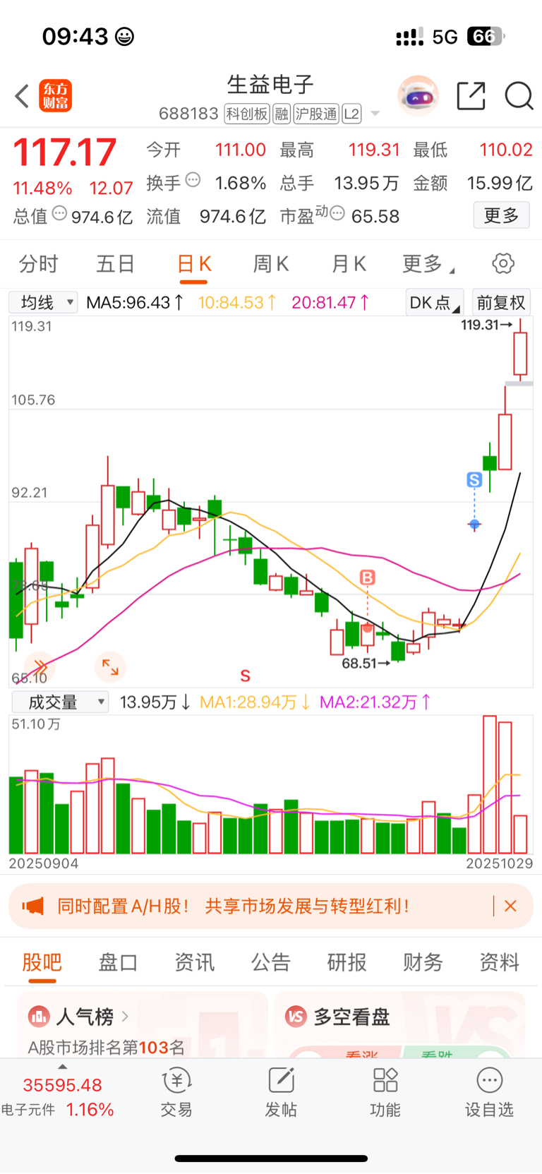 $生益电子(SH688183)$ 第一次卖飞这么猛的股,没有发财命啊