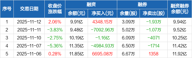 生益电子:融资净买入4348.15万元,融资余额9.91亿元(11-12)