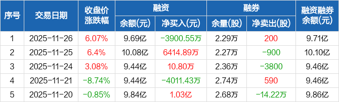 生益电子:融资净偿还3900.55万元,融资余额9.69亿元(11-26)