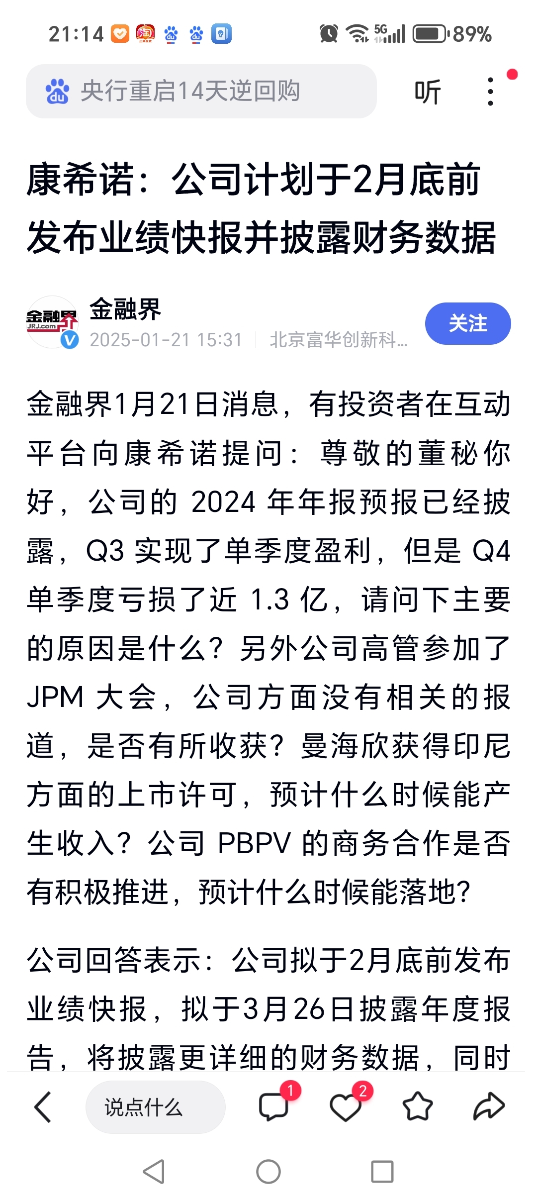 $康希诺(SH688185)$ 看来康希诺24年业绩不错,二月底出快报。
