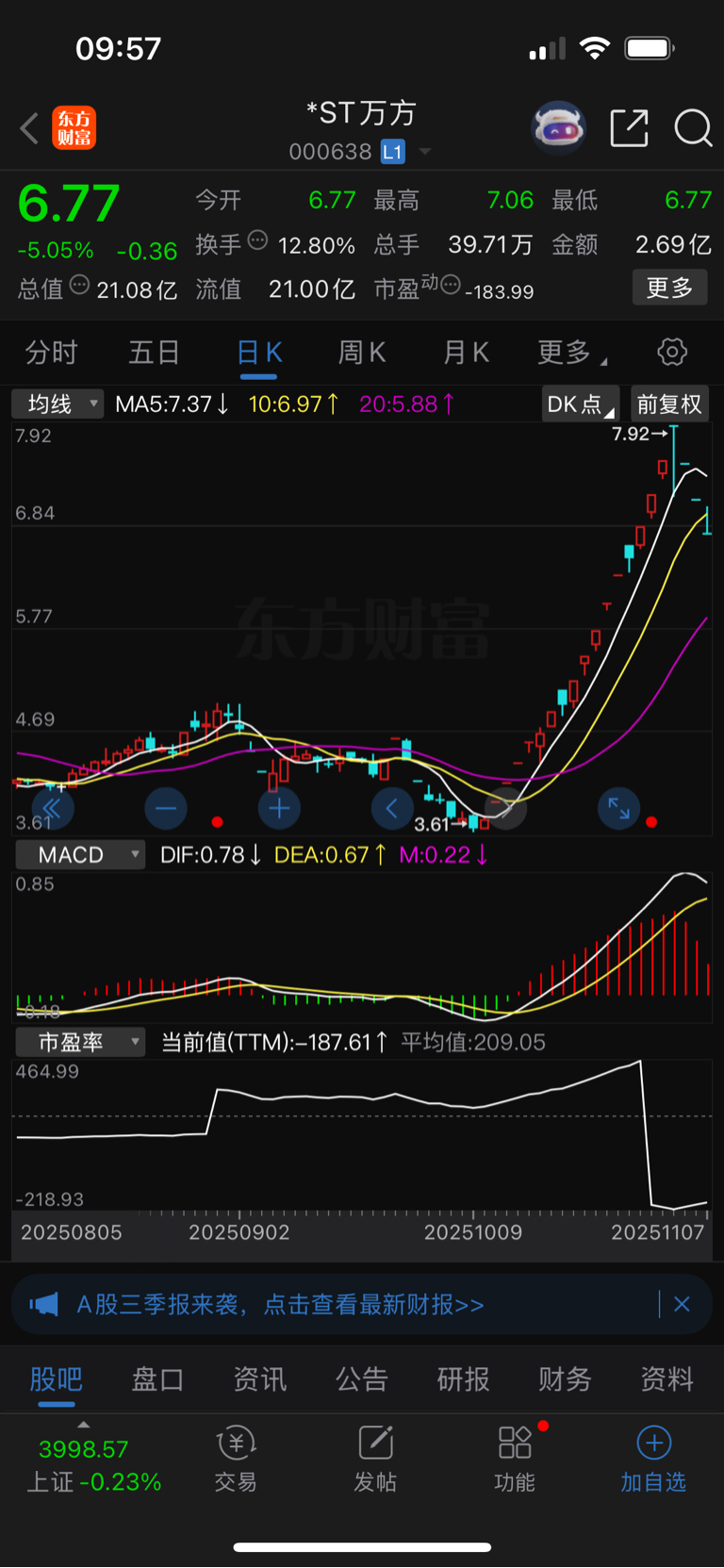 下周择机返场万方。前些天卖飞了两三个报,木有卖到最高点