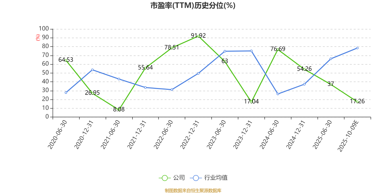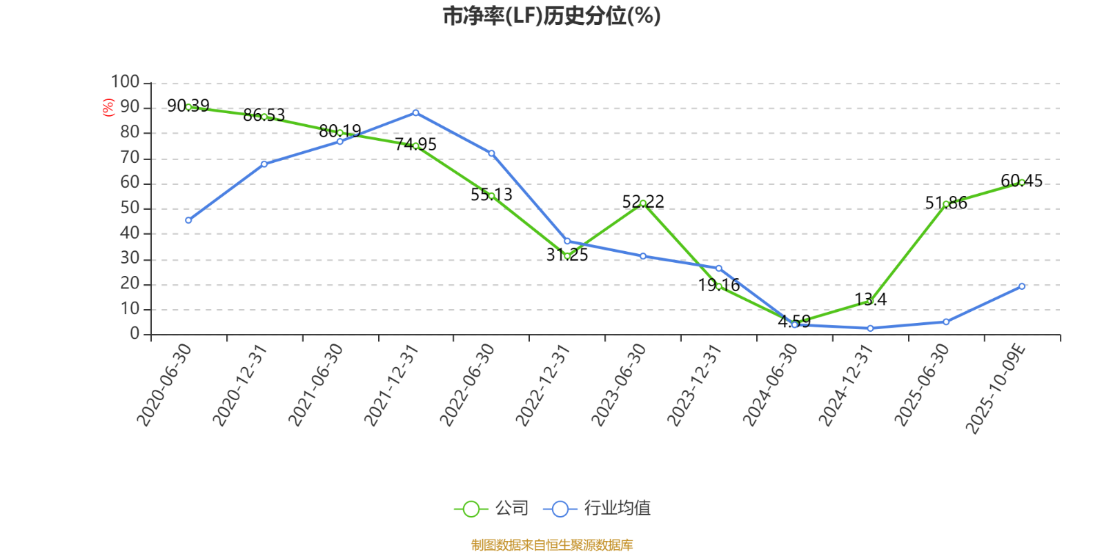 市盈率、市净率为负时,不显示当期分位数,会导致折线图中断。
