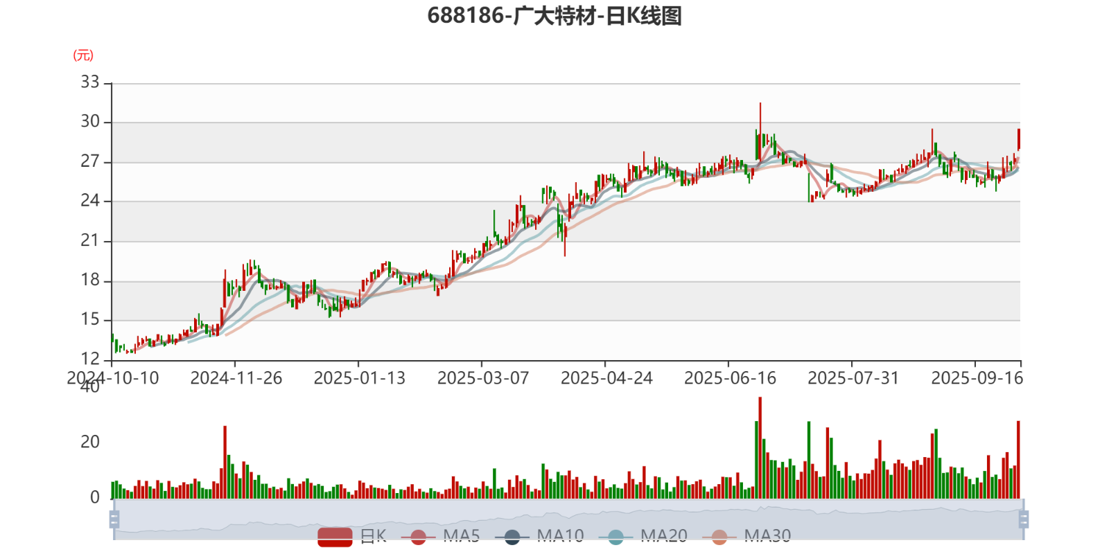 中证智能财讯广大特材(688186)10月9日晚间披露业绩预告,预计2025年前三季度实现营业收入37亿元,同比增长25.04%;归母净利润2.48亿元,同比增长213.92%;扣非净利润预计2.4亿元,同比增长458.14%。以10月9日收盘价计算,广大特材目前市盈率(TTM)约为29.19倍,市净率(LF)约2.35倍,市销率(TTM)约1.74倍。