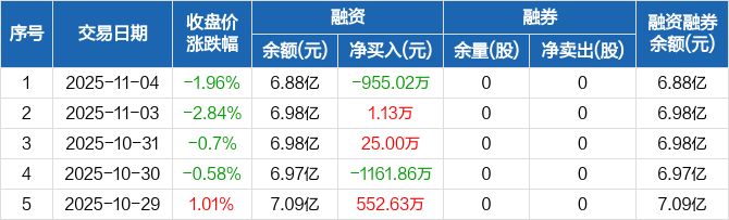 广大特材:融资净偿还955.02万元,融资余额6.88亿元(11-04)