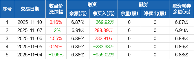 广大特材:融资净偿还369.92万元,融资余额6.87亿元(11-10)