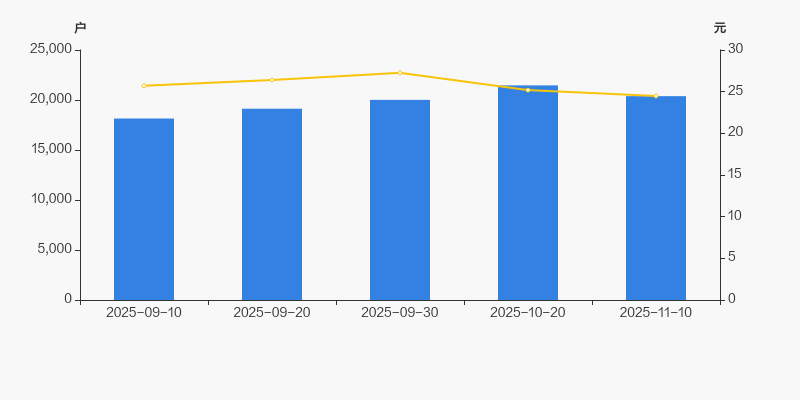 2025年9月10日至今,公司股东户数显著增长,区间涨幅为12.31%。2025年9月10日至2025年11月10日区间股价下降4.78%。