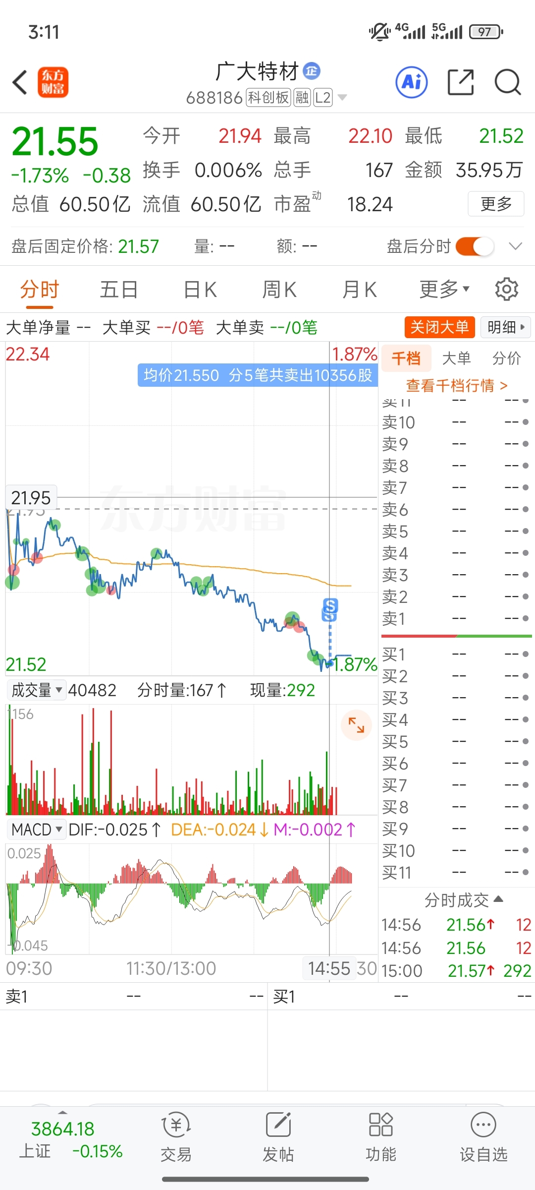 $广大特材(SH688186)$ 割了,可以开涨了,狗徐