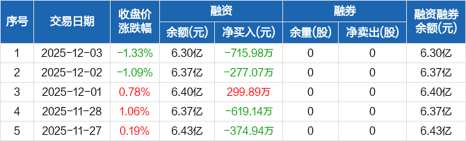广大特材:融资净偿还715.98万元,融资余额6.3亿元(12-03)