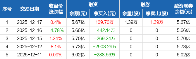 广大特材:融资净买入109.7万元,融资余额5.67亿元(12-17)