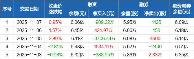 时代电气:融资净偿还909.22万元,融资余额6.06亿元(11-07)