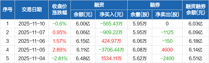 时代电气:融资净偿还565.43万元,融资余额6亿元(11-10)