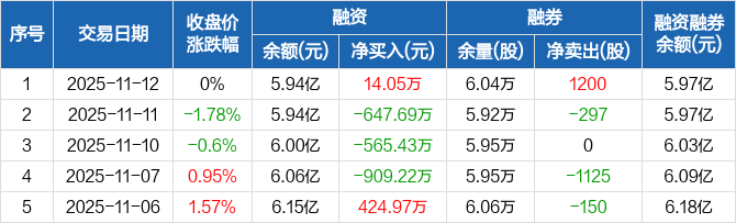 时代电气:融资净买入14.05万元,融资余额5.94亿元(11-12)