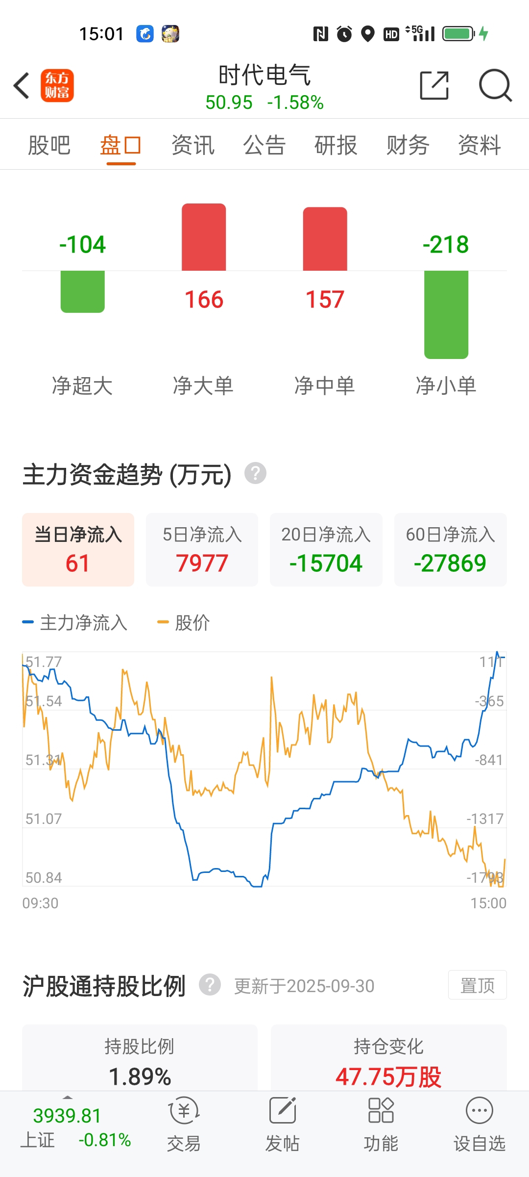 $时代电气(SH688187)$ 群里高手能帮忙分析下,主力流入时股价反而大跌背离,小单蜂拥而出,是什么原因?