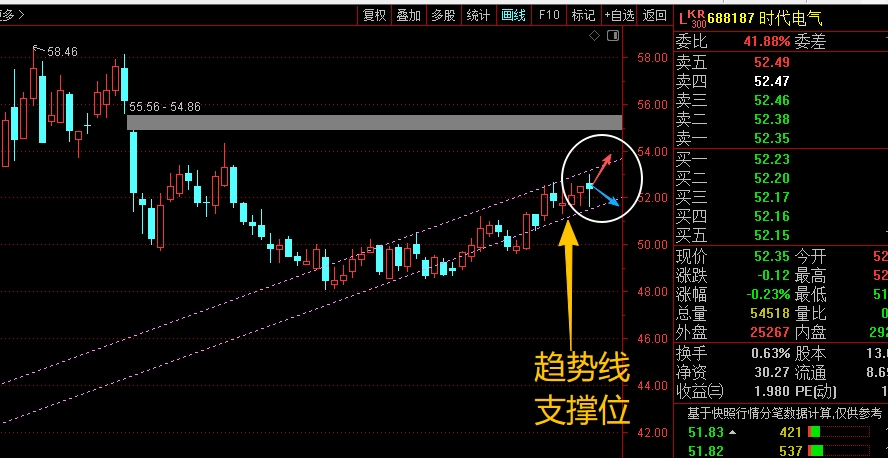 $时代电气(SH688187)$ 近期接连的反弹趋势尚可,但整体来看不够强势,主要是沿着小通道进行震荡上行,接下来主要就看能否延续这个震荡上行的趋势,能就没问题,如果不能延续,回落下来就需要注意脚底趋势线的支撑,有效跌破就需要注意控制仓位应对潜在的回落风险。#炒股日记# #收盘点评#
