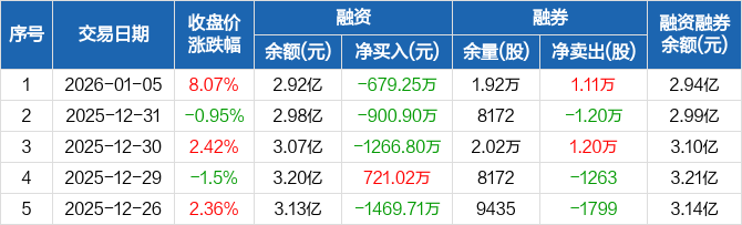 柏楚电子:连续3日融资净偿还累计2846.95万元(01-05)