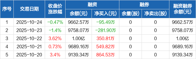 南新制药:融资净偿还95.49万元,融资余额9662.57万元(10-24)
