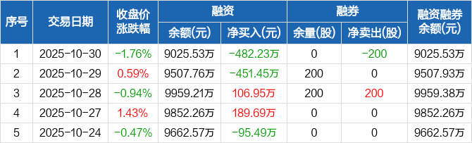 南新制药:融资净偿还482.23万元,融资余额9025.53万元(10-30)