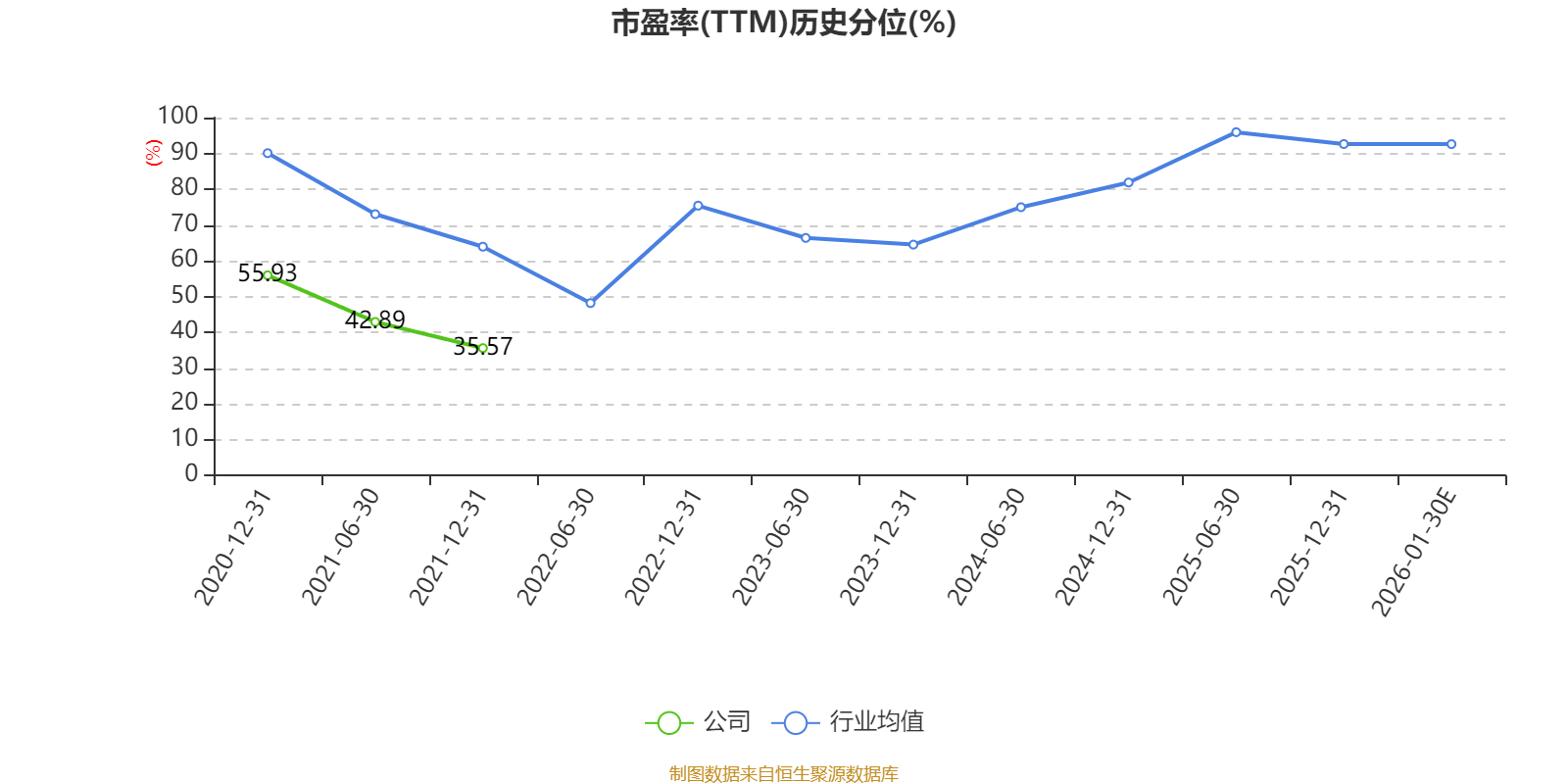 以本次披露业绩预告均值计算,公司近年市盈率(TTM)图如下所示: