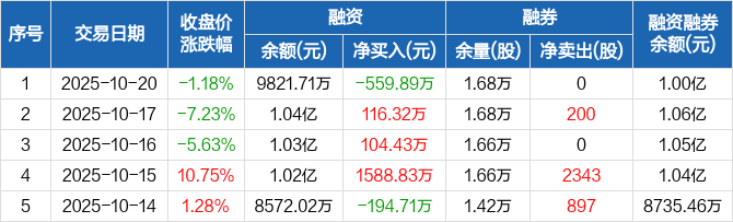 云路股份:融资净偿还559.89万元,融资余额9821.71万元(10-20)