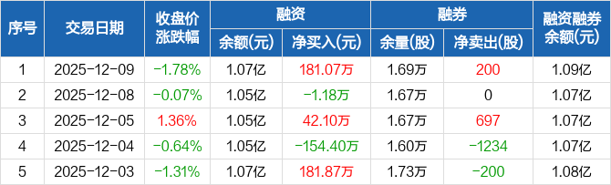 云路股份:融资净买入181.07万元,融资余额1.07亿元(12-09)