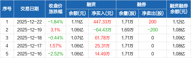 云路股份:融资净买入447.33万元,融资余额1.11亿元(12-22)