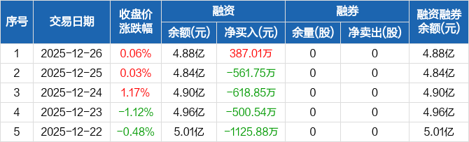 智洋创新:融资净买入387.01万元,融资余额4.88亿元(12-26)