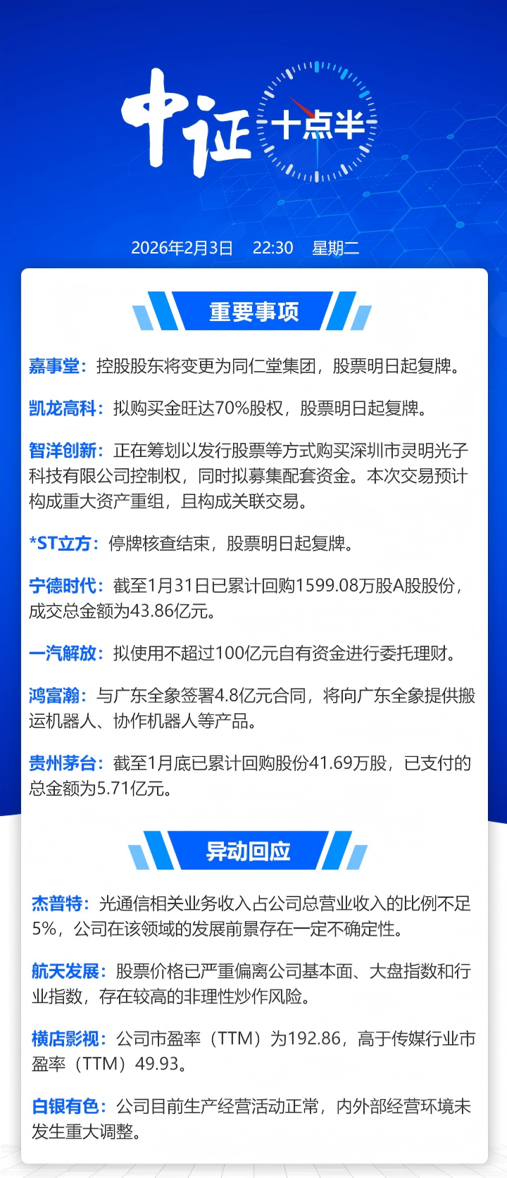 【中证十点半】智洋创新筹划重大资产重组;鸿富瀚签下4.8亿元机器人产品大单