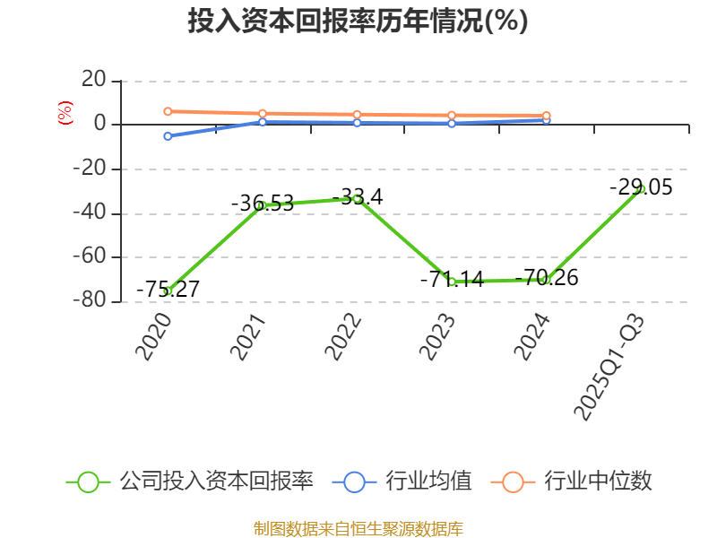 盈利能力方面, 2025年前三季度公司加权平均净资产收益率为-63.34%,同比上升22.58个百分点。公司2025年前三季度投入资本回报率为-29.05%,较上年同期上升19.86个百分点。