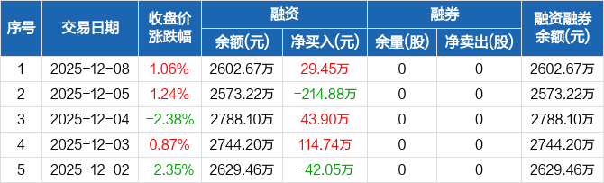 仁度生物:融资净买入29.45万元,融资余额2602.67万元(12-08)