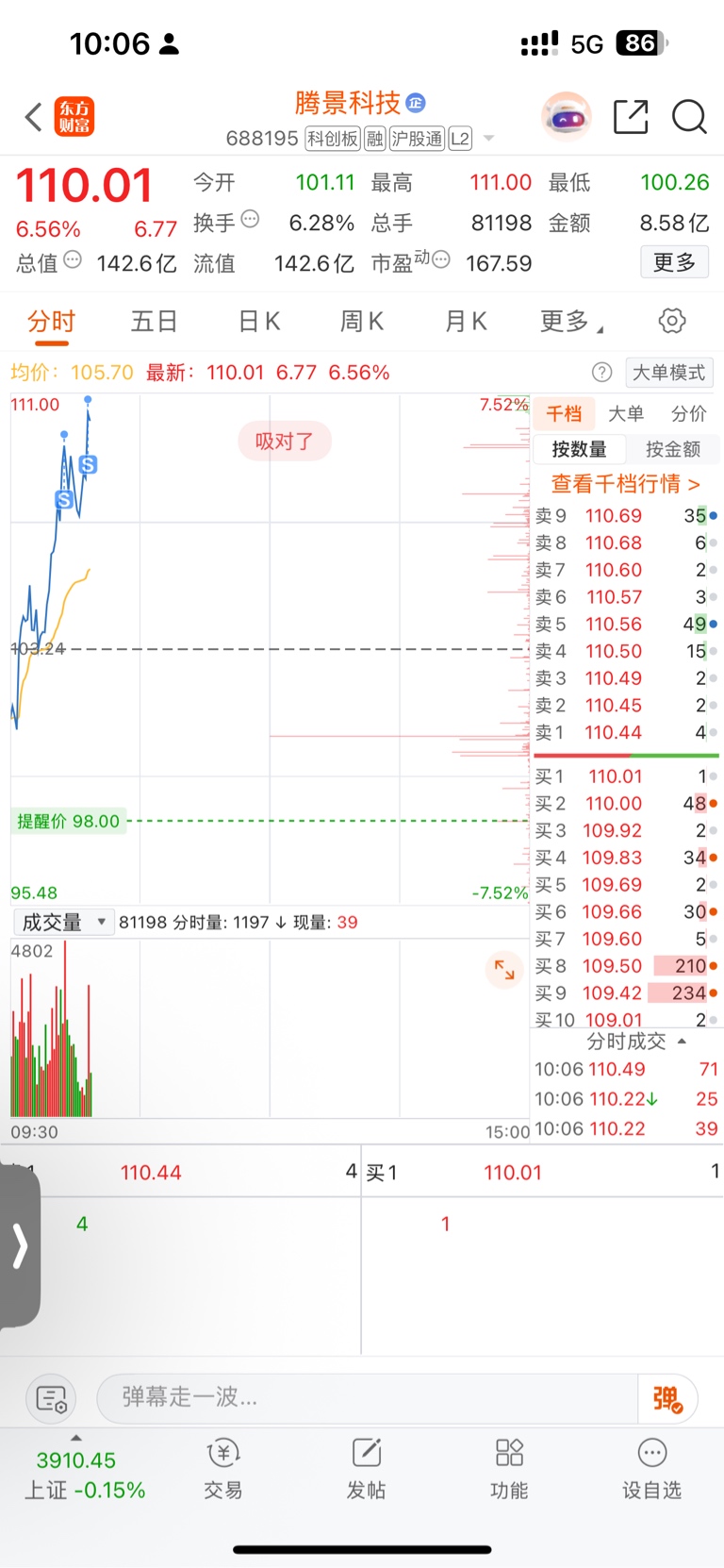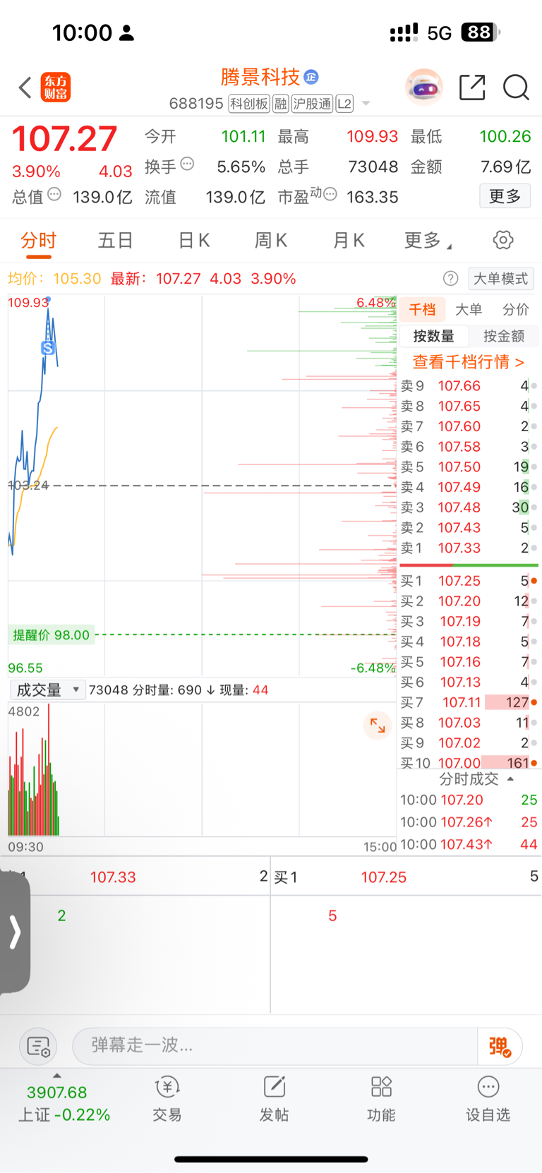 $腾景科技(SH688195)$ 回踩5日线再买回做T不能幻想一飞冲天