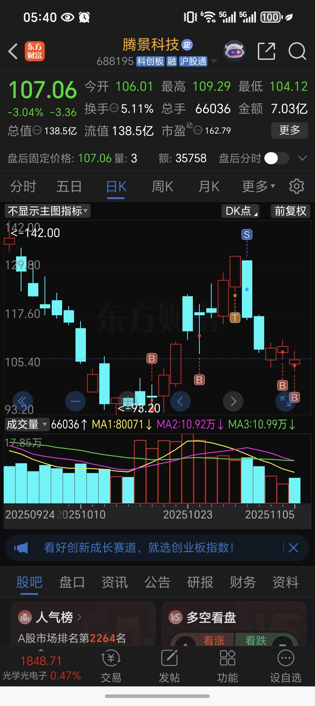 $腾景科技(SH688195)$ 5天前全部丢光,这两天补回原仓位,还加了20%的仓位,干就一个字