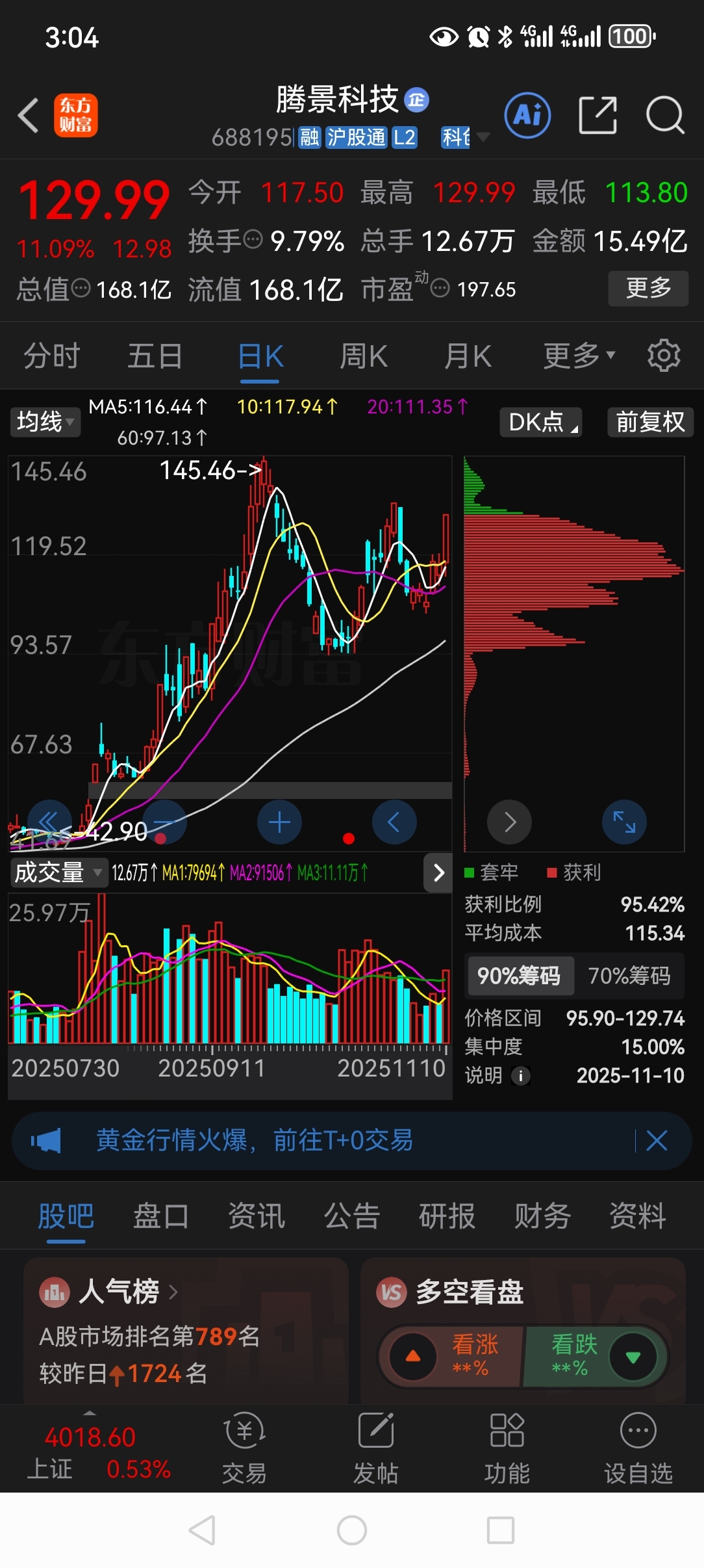 知道你强,不知道你这么强!腾景重回130-140前高强压力区间,确实厉害!跨过1