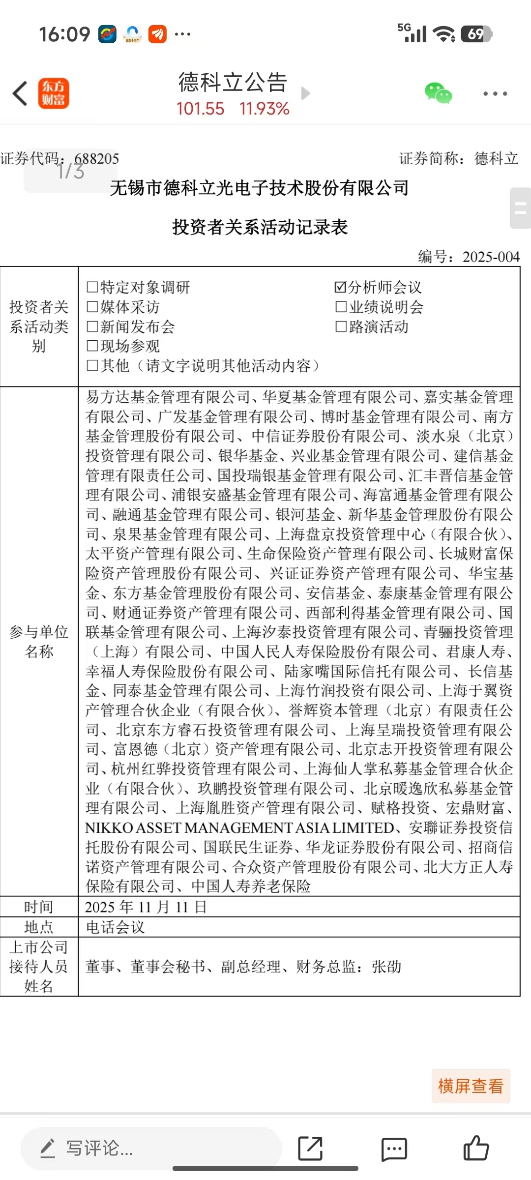 $腾景科技(SH688195)$ 昨天这么多的去调研了,很多都是绝对的大佬了
