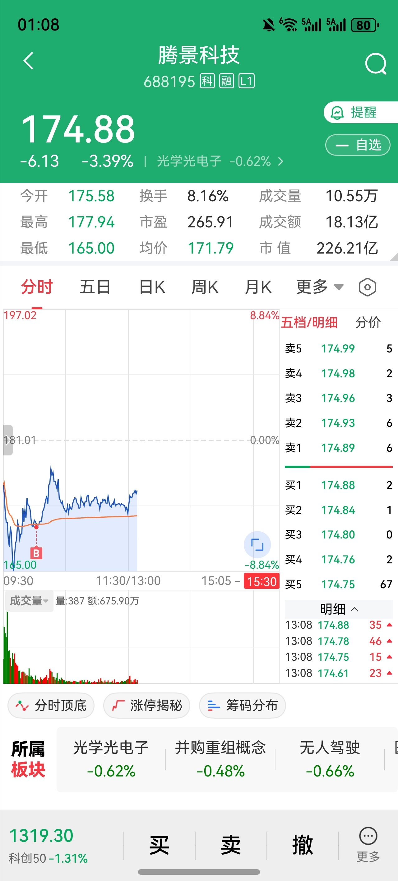 $腾景科技(SH688195)$ 跌不下去,那就拿点先手!