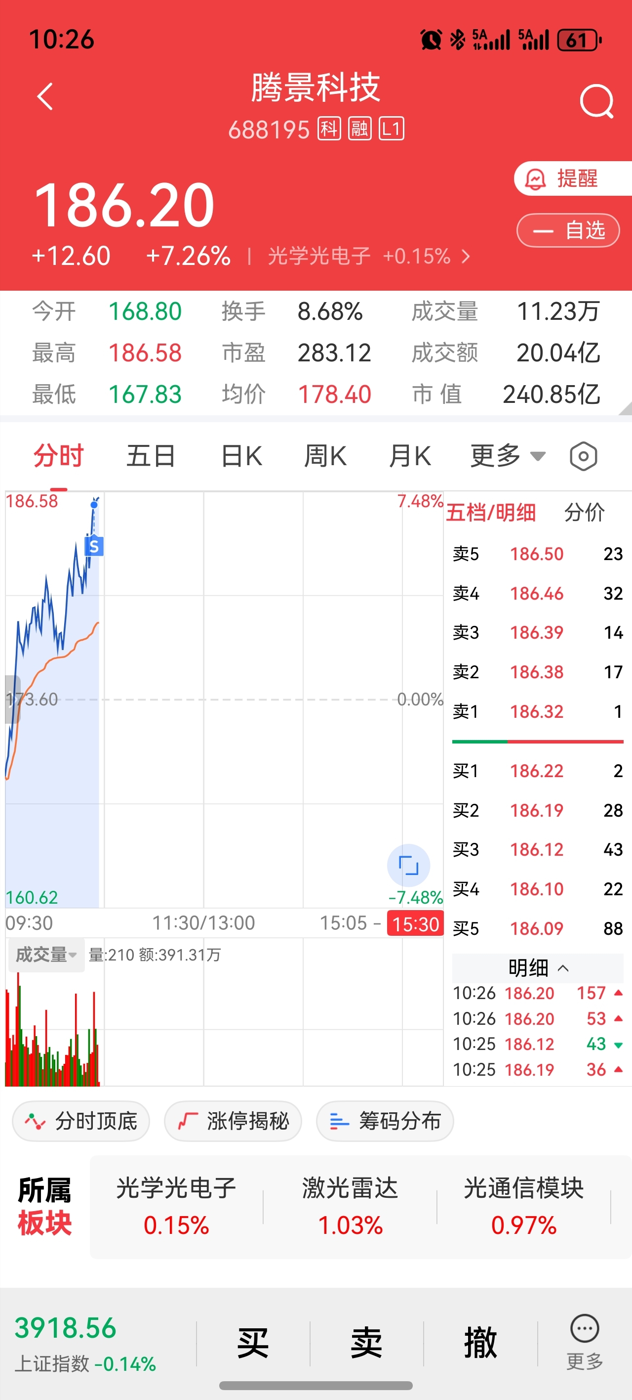 $腾景科技(SH688195)$ 知足常乐,这价位允许自己卖飞!
