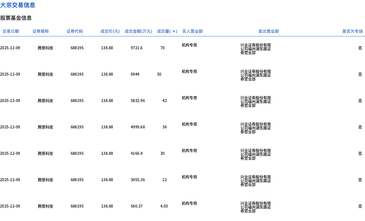 腾景科技今日大宗交易折价成交254.03万股,成交额3.53亿元