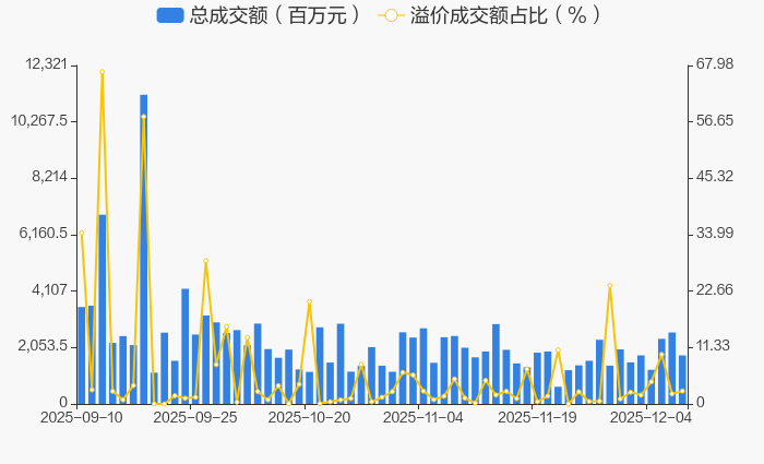 2025年12月9日沪深两市67只个股发生129笔大宗交易,共成交17.66亿元。其中,沪市32只个股共56笔大宗交易,总成交额为11.23亿元;深市33只个股共71笔大宗交易,总成交额为6.33亿元。沪指当日收盘报3909.52点,下跌0.37%,成交金额7811.6亿元。