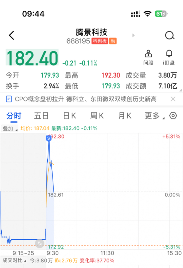 $腾景科技(SH688195)$ 卖了一半,留一半看看,这种天天波动真快!跑慢一点都的亏