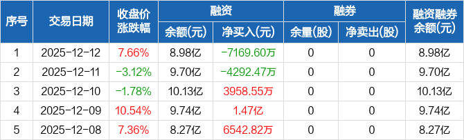腾景科技:融资净偿还7169.6万元,融资余额8.98亿元(12-12)