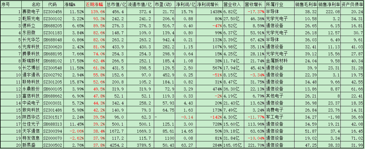 本文根据公开信息,整理出了A股谷歌概念叠加CPO近期市场表现最好的10家上市公司,供大家进行学术交流和探讨,但不构成任何投资建议。